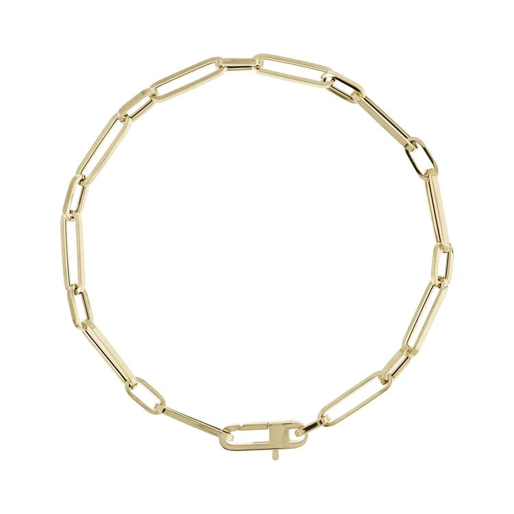 This 9ct Yellow Gold Paper Link Bracelet features the very current and fashionable 'paper clip' chain style. At 20cm, it fits easily on the wrist and paired with the matching necklace, it is truly a stand out.
