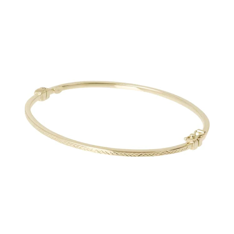 9ct Yellow Gold Diamond Cut Square Tube Bangle in 60mm