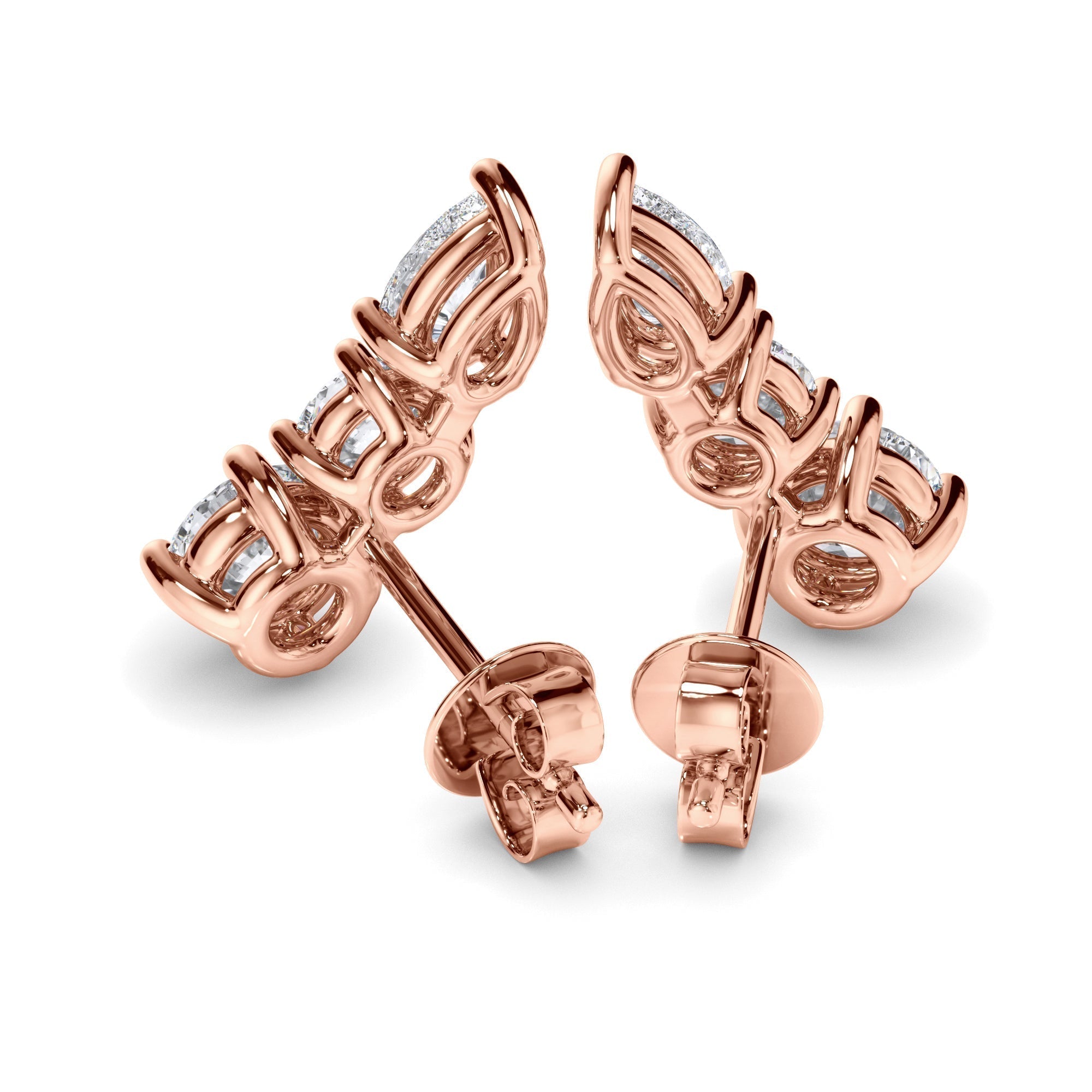 Round Brilliant & Pear Cut 3-Stone Stud Earrings