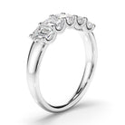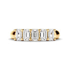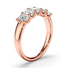 This stunning custom-made anniversary ring features five emerald cut diamonds set on an 18ct gold or platinum band. Exuding fluidity in its line work, and boasting an elegant silhouette, as with all the pieces in our Bespoke Collection, this piece is made especially for you.
