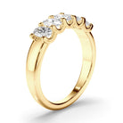 This stunning custom-made anniversary ring features five oval cut diamonds set on an 18ct gold or platinum band. Exuding fluidity in its line work, and boasting an elegant silhouette, as with all the pieces in our Bespoke Collection, this piece is made especially for you.