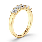 This stunning custom-made anniversary ring features five radiant cut diamonds set on an 18ct gold or platinum band. Exuding fluidity in its line work, and boasting an elegant silhouette, as with all the pieces in our Bespoke Collection, this piece is made especially for you.