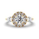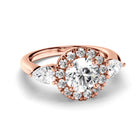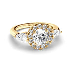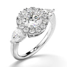 Round Brilliant Cut Diamond Halo Trilogy Engagement Ring with Pear Sides