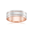 Explore our exquisite custom range of Australian Made multi-tone rings, where contrasting metal colours come together to create a striking visual allure. Perfect as both wedding and dress rings, these sophisticated pieces blend timeless elegance with modern flair. Available in various widths, finishes, and color combinations, they make a unique statement for any style. Image shown in ring size U with width 7mm, thickness 1.4mm, in 9ct Two-Tone Gold. All rings in our men's wedding band collection are made to order, with a 4-6 week turn around. Book an instore no-obligation appointment, or make a product enquiry online today.