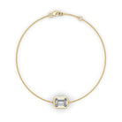 This timeless bezel set diamond bracelet, made with your choice of diamond centre stone, features a 1.00ct emerald cut diamond set in 18ct gold. Exuding fluidity in its line work, and boasting an elegant silhouette, as with all the pieces in our Bespoke Collection, this piece is made especially for you.