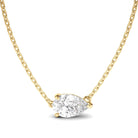 This elegant pear cut diamond necklet, made with your choice of diamond centre stone, features an East West setting and includes a 45cm 18ct gold chain. Exuding fluidity in its line work, and boasting an elegant silhouette, as with all the pieces in our Bespoke Collection, this piece is made especially for you. Pictured here with a 1.50ct Pear Cut Diamond, a final price is determined following your centre stone selection.