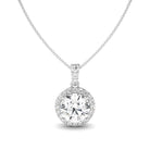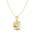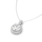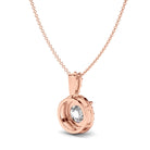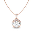 This elegant diamond halo pendant, made with your choice of diamond centre stone, features a minimum 0.10ct round brilliant cut diamond halo and bail. Exuding fluidity in its line work, and boasting an elegant silhouette, as with all the pieces in our Bespoke Collection, this piece is made especially for you. Pictured here with a 1.00ct Round Brilliant Cut Diamond centre stone, a final price is determined following your centre stone selection.