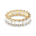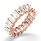 This stunning custom-made eternity ring features a full band of emerald cut diamonds set on an 18ct gold or platinum band. Exuding fluidity in its line work, and boasting an elegant silhouette, as with all the pieces in our Bespoke Collection, this piece is made especially for you.