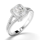 Radiant Cut Diamond Halo Engagement Ring with Pave Sides
