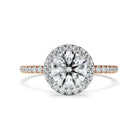 Round Brilliant Cut Diamond Halo Engagement Ring With Pave Band