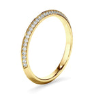This stunning custom-made wedding ring features two rows of round brilliant cut diamonds set along an 18ct gold or platinum knife edge band. Exuding fluidity in its line work, and boasting an elegant silhouette, as with all the pieces in our Bespoke Collection, this piece is made especially for you.
