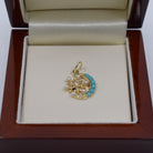 10ct Yellow Gold Turquoise, Seed Pearl and Diamond Crescent Moon Pendant