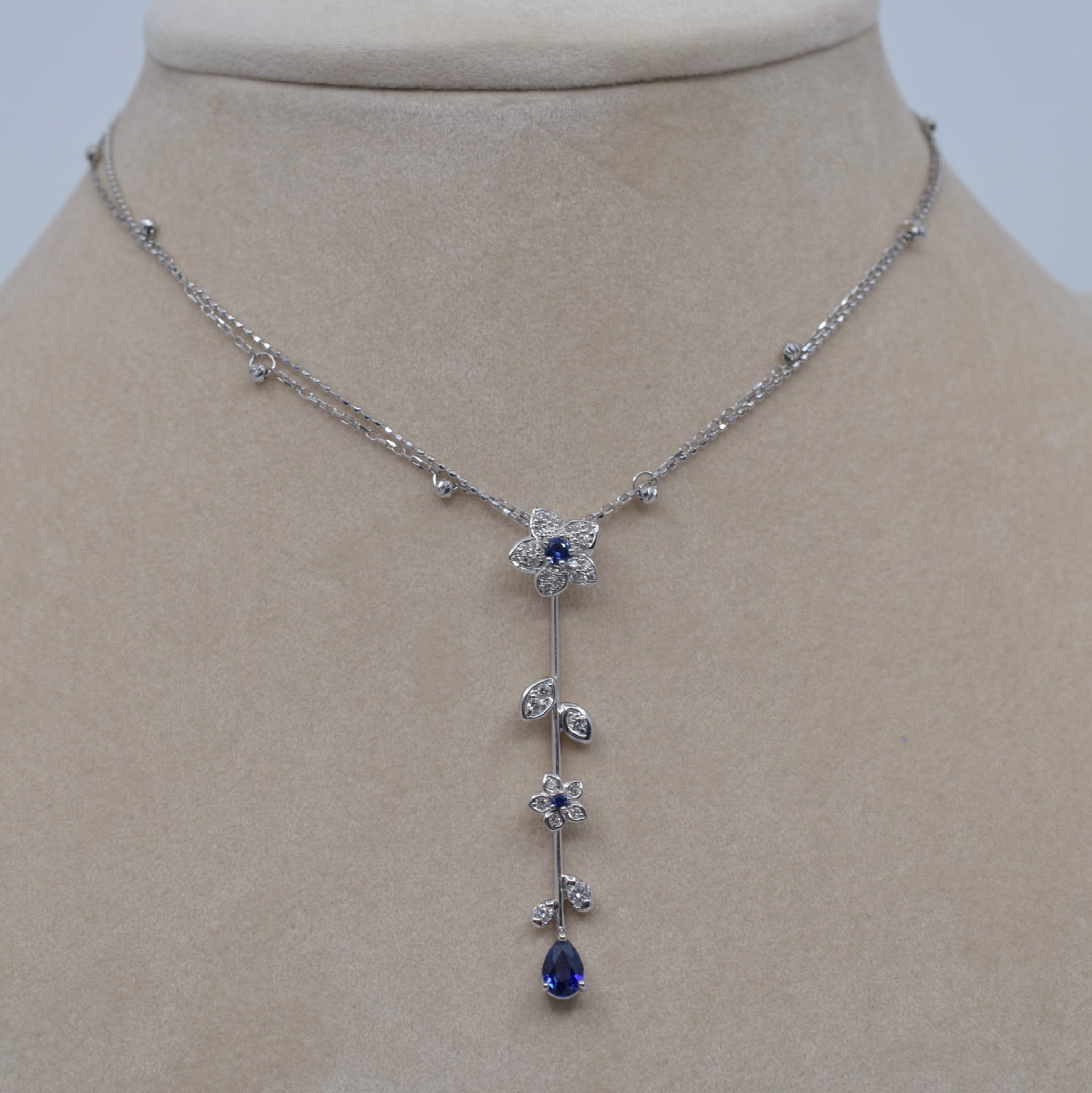 18ct White Gold Sapphire & Diamond Articulated Floral Pendant Necklace with valuation of $3350