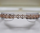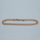 This gorgeous bracelet is crafted from 9ct rose gold and features a very interesting fancy link design. Made up of two intertwined twisted curb style chains, one of the chains has the edges of the links flattened at the edges which gives them a fan type look. This really helps to increase the presence of the bracelet on the wrist and adds that element of difference.