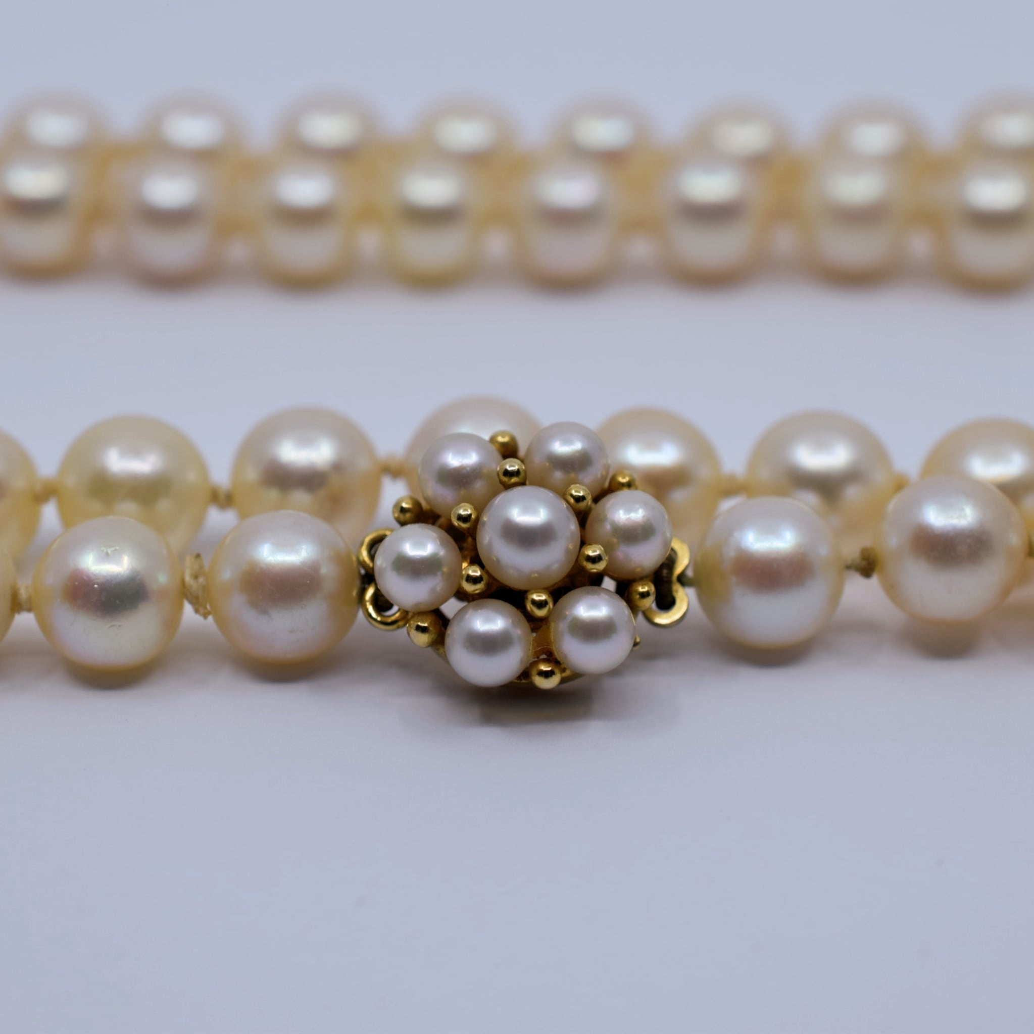 Vintage 82cm Cultured Pearl Necklace with 9ct Yellow Gold Cultured Pearl Cluster Clasp
