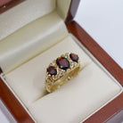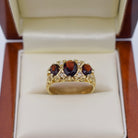 Vintage 9ct Yellow Gold Garnet and Diamond London Bridge Ring dated 1970