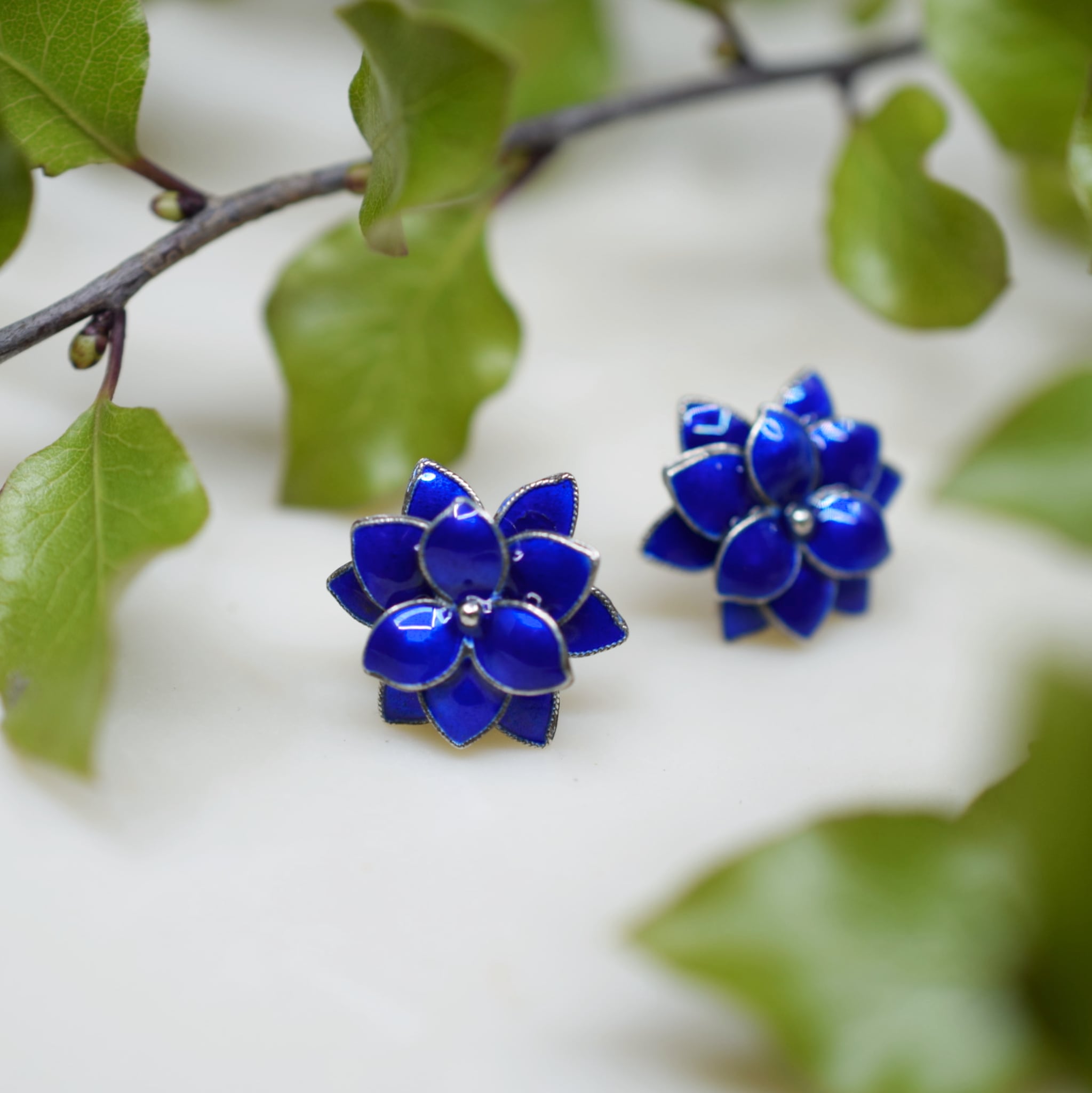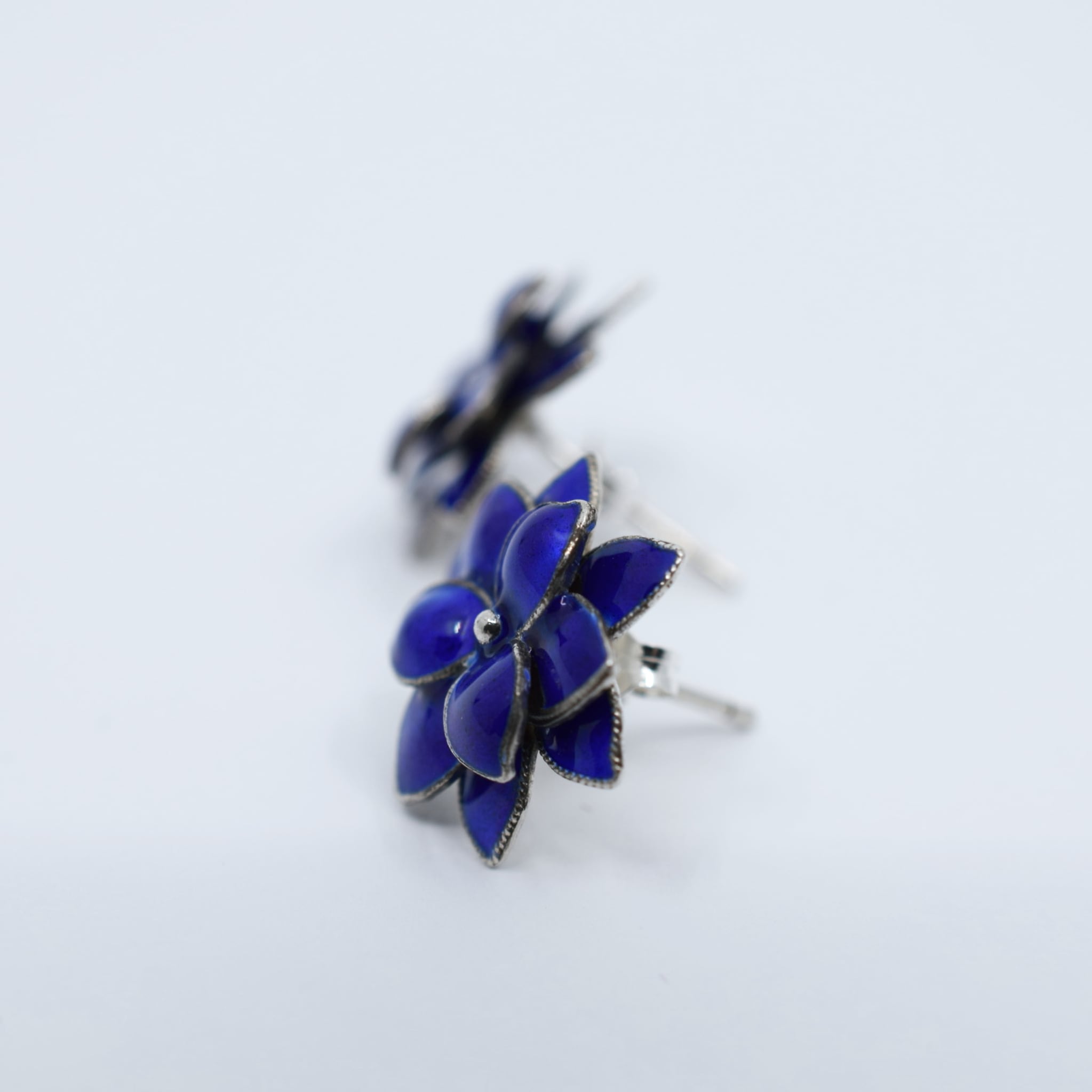 Just wow, these earrings are like a work of art. Crafted from Sterling Silver, they feature the most amazing blue enamel petals that have been layered beautifully. With three petals on the top tier, three petals on the middle tier and six petals on the bottom tier with rope detail on the edges, they are simply divine.
