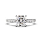 Cushion Cut Diamond Solitaire Engagement Ring With Diamond Sides