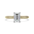 Emerald Cut Diamond Knife Edge Engagement Ring With Diamond Pave Sides