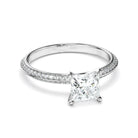 Princess Cut Diamond Knife Edge Engagement Ring With Diamond Pave Sides