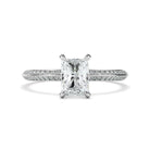Radiant Cut Diamond Knife Edge Engagement Ring With Diamond Pave Sides