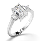 Emerald Cut Diamond Trilogy Engagement Ring with Round Brilliant Sides