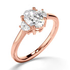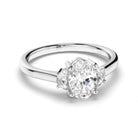 Oval Cut Diamond Trilogy Engagement Ring with Half Moon Sides