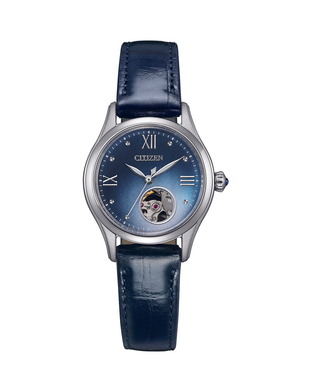 A feminine design that combines the technology and craftsmanship Citizen has to offer. Part of the Women’s Automatic collection, this watch features a 40-hour power reserve, 50-meter water resistance, silver indices against a blue, open-heart dial encased in a stainless-steel case and matching blue leather strap. By incorporating functionality and design, you can experience luxury and confidence daily.