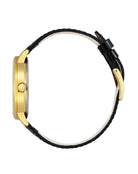 Crafted from robust gold stainless steel and featuring an ivory white dial with easy to read black markings , gold silver toned bezel and bold obsidian oxhide leather strap for comfort, this watch embodies classic styling and contemporary performance. Adding to its appeal, it is precise to within 20 seconds each month and also features Eco-Drive technology, making it a reliable watch that is a go-to piece for all occasions.
