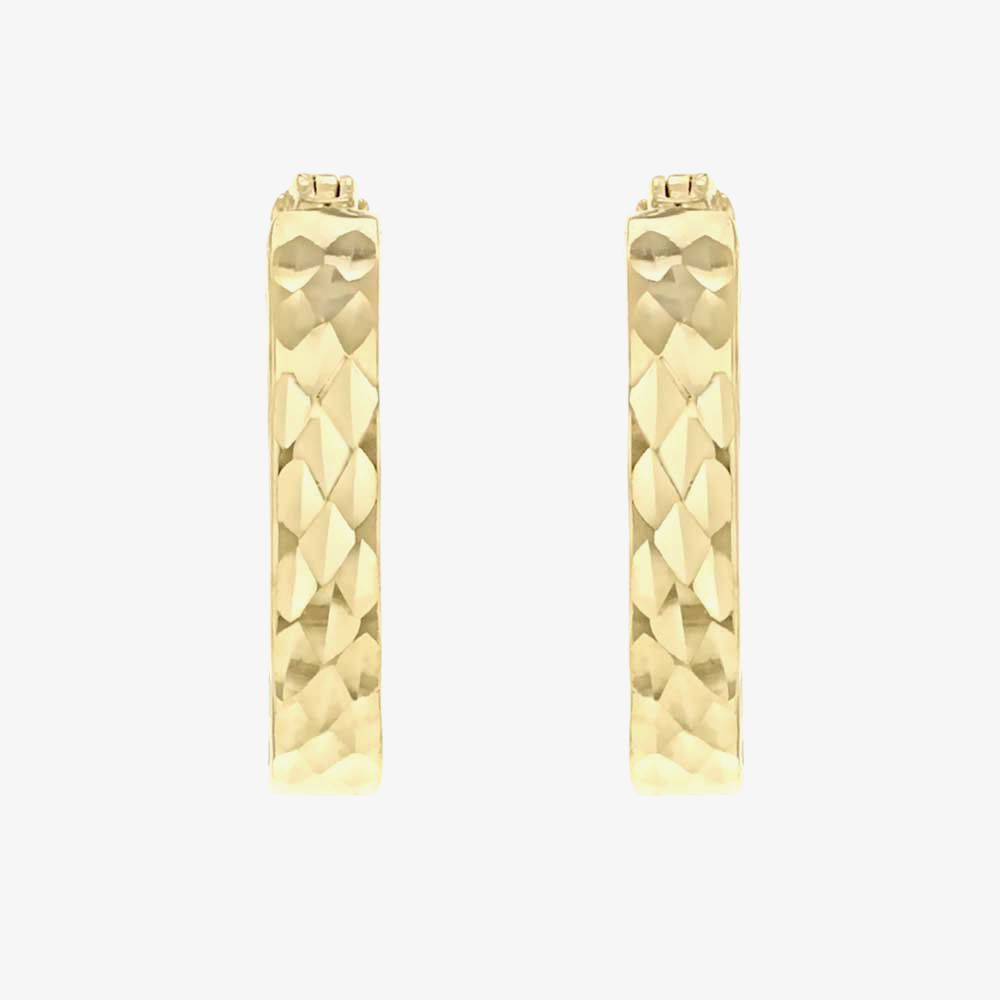 Introducing this fabulous pair of 9ct gold creoles, attractive accessories to suit any style. The exquisite craftsmanship features a stunning diamond cut pattern that catches light to give a luxurious shimmer.