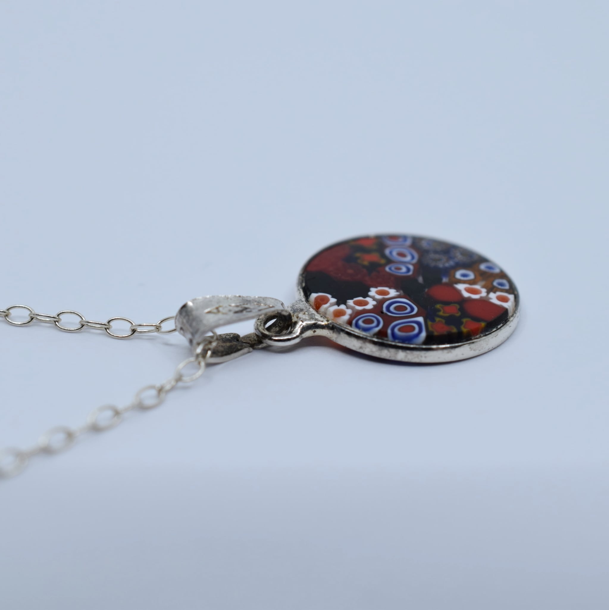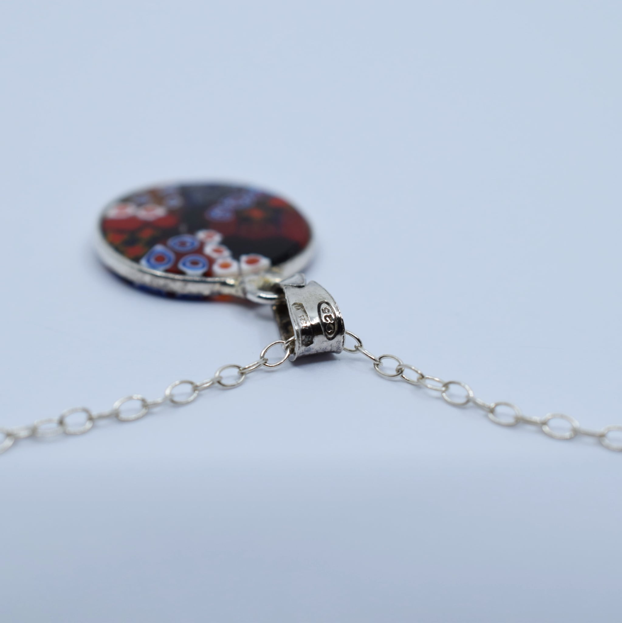 Vintage Sterling Silver Millefiori Pendant Necklace by Antica Murrina Veneziana